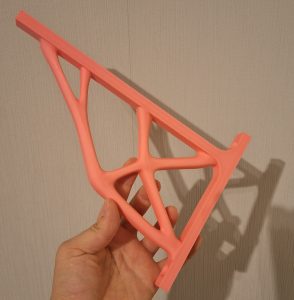 The prototype models were printed out of regular PLA-filament by my friend, who also optimized the key printing parameters. The wall count was raised to 5 to reinforce the print. Infill density was set to 15% and it used a gyroid pattern. Layer height was set to be adaptive in range of 0.2 to 0.8 millimeters. With these parameters the total material consumption for a single bracket was estimated by the slicer software to be 82 grams. Assuming that a kilogram of PLA-filament costs around 25 euros, the material cost for a single bracket is less than 2.5 euros. Not bad for a functional prototype manufactured in less than 3 hours!