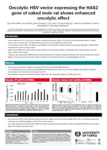 - Palomäki, J., Kalke, K., Orpana, J., Lund, L., Frejborg, F., Paavilainen, H., Järveläinen, H., & Hukkanen, V. (2023). Attenuated Replication-Competent Herpes Simplex Virus Expressing an ECM-Modifying Transgene Hyaluronan Synthase 2 of Naked Mole Rat in Oncolytic Gene Therapy. Microorganisms, 11(11), 2657. [doi] [www]
