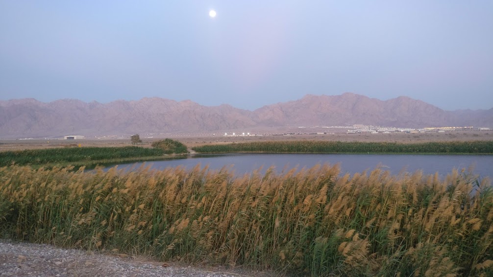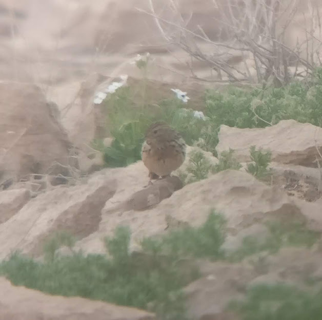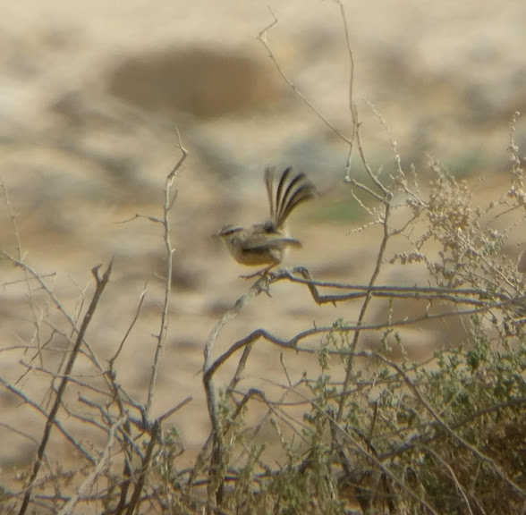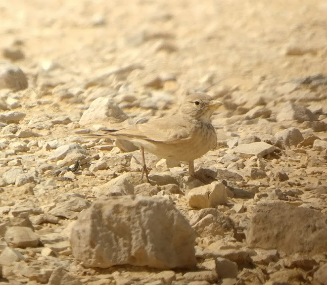 12-tien vieressä pysähdyimme sattumanvaraiseen kohtaan aavikolla, joka näytti hyvältä. Ja olihan se. Aavikkotulkku töttäili menemään, arotaskuja useampi ja taas pari aavikkokiurua. Teimme vastaavanlaisen pysähdyksen Har Parotin tiellä, ja siitä näkyi etelänisolepinkäinen. Putkellä löytyi kauempana myös aavikkokerttu ja yli lensi yllättäen pari syyrianhemppoa! Tässä kohtaa paikallinen perhe vinkkasi, että pienen matkan päässä on hienoja dyynejä. Kannatti käydä, koska matkalla löytyi autosta lugens. Dyynit olivat myös näyttäviä.