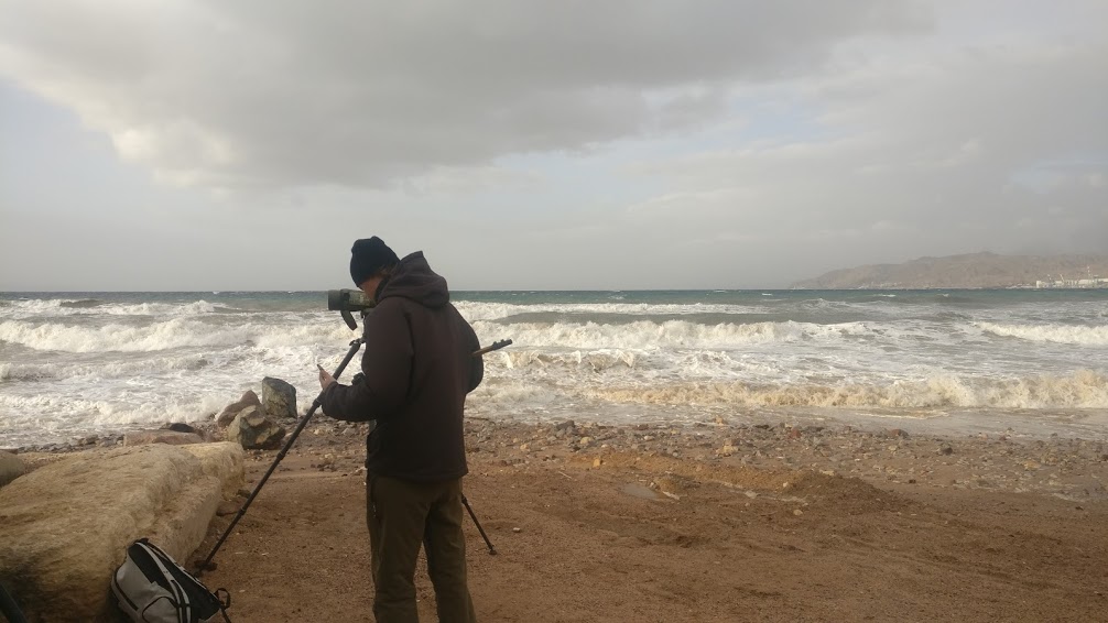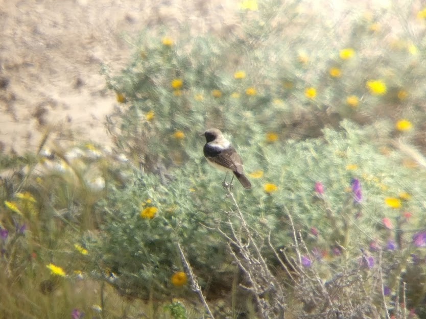 Hirveä blosis etelästä, ja lähdimme aamuksi North Beachiin. Fuscareita muutti noin 120, ja haapana, merikihu, riuttis ja gelo repeiksi. Aamun paras havis oli fuscari-parvessa muuttanut 2kv mustapäälokki! Ajelimme siitä Yotvataan yrittämään taas naamakyyhkyä, mutta ei hoitunut. Eilinen (hiekka)myrsky jatkui, ja retkeilyolosuhteet eivät olleet optimaaliset.