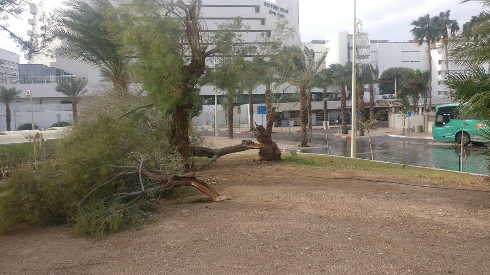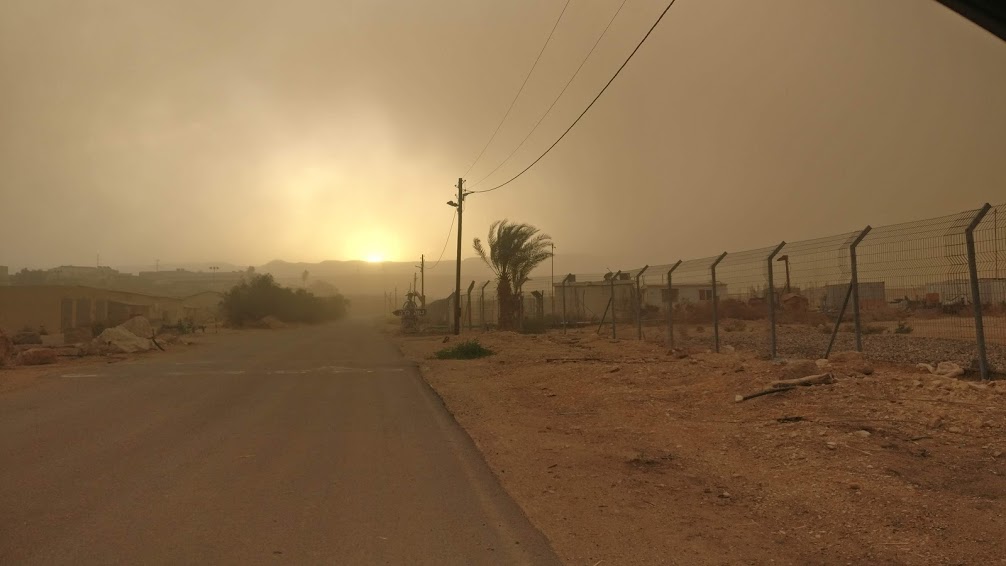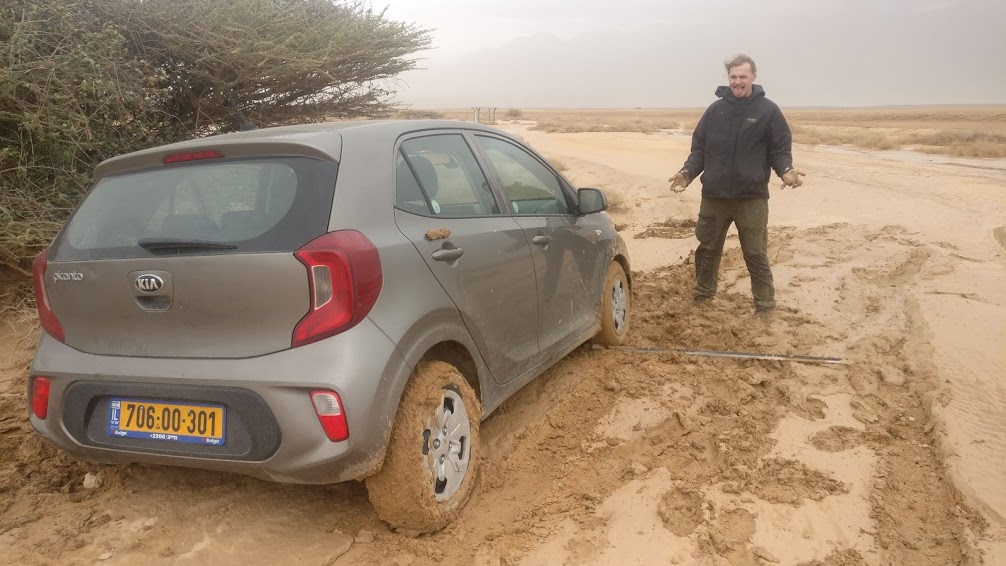 Myrskykelit jatkuivat. Yöllä satoi reilumman puoleisesti, ja kahdelta yöllä olimme tekemässä lähtöä hostellista. Respatyyppi sanoi, että tiet ovat myrskyn takia kiinni, ja näin tosiaan oli. Poliisit käännyttivät meidä 40-tien risteyksessä, ja ajoimme siitä takaisin Yotvataan.