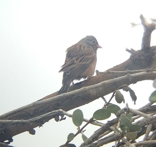Aamuksi taas North Beachille. Jordanian puolella oli pari valkosilmälokkia, ja siitä lähdettiin taas tsekkaamaan lähialtaat. Siellä lenteli kyyryhaikara ja repeiksi suosirri ja liro. Ojan puolella havaittiin remiz ja sinirinta. Tien yli lensi harakkakäki ja hiekkatörmillä pomppi rusotasku.