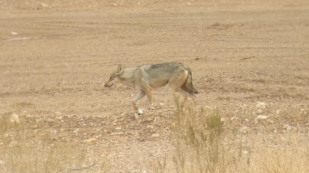 Neljän maissa lähdettiin pohjoiseen päin, ja ajatuksena oli ennen auringon nousua olla Schaharin nuotittamilla pelipaikoilla. Toisin kävi. Kännyttiin 90-tieltä länteen, google mapsin ehdottamaa reittiä, ja matka oli melko kivinen. Päädyimme erittäin huonokuntoiselle aavikkotielle, ja jäimme jumiin hiekkaan. Laitettiin pari keppiä renkaiden alle, pääsimme irti ja lähdimme takaisin isolle tielle. Kia Picanto osoittautui yllättävän maastokelposeksi. Tässä kului harmittavaisesti hieman aikaa. Nähtiin tosin päivän eka elis, aavikkokiuru, pesimäbiotoopissaan.