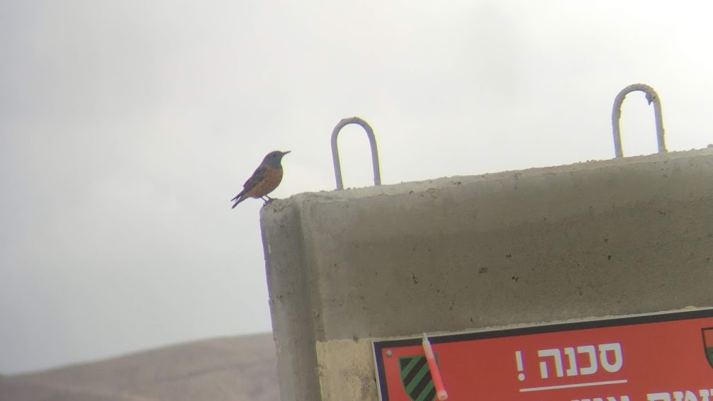 Lähdimme kohti Tel Avivia, ja muutama tiesulku piti kylmästi ohittaa, onneksi vartija oli nukkumassa autossaan. Tiesulkujen ansiosta tiet olivat täysin tyhjät, ja pääsi pysähtelemään rauhassa. Tiekyltin päällä komeili kivikkorastas, ja auton vieressä jolkotteli arabiansusi! Näiden lisäksi nähtiin paluumatkalla paikallinen rufinus.