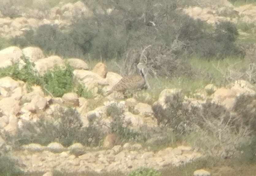 Taas Ovdaan ja Har Parotin tielle. Tällä kertaa päästiin mestoille ennen auringon nousua. Komppauksen tuloksena oli kolmen paksunokkakiurun parvi, pari sarvikiurua ja n aavikkotasku! Mieletöntä. Lisäksi lapinkirvinen, 10 aavikkotulkkua, 7 nummikirvistä, pari lugensia ja n. 80 lyvakia. Yotvatan lehmäfarmilla käytiin yrittämässä naamakyyhkyä, mutta tuli vesiperä. Päivän päätti elis hiekkamyrskystä.
